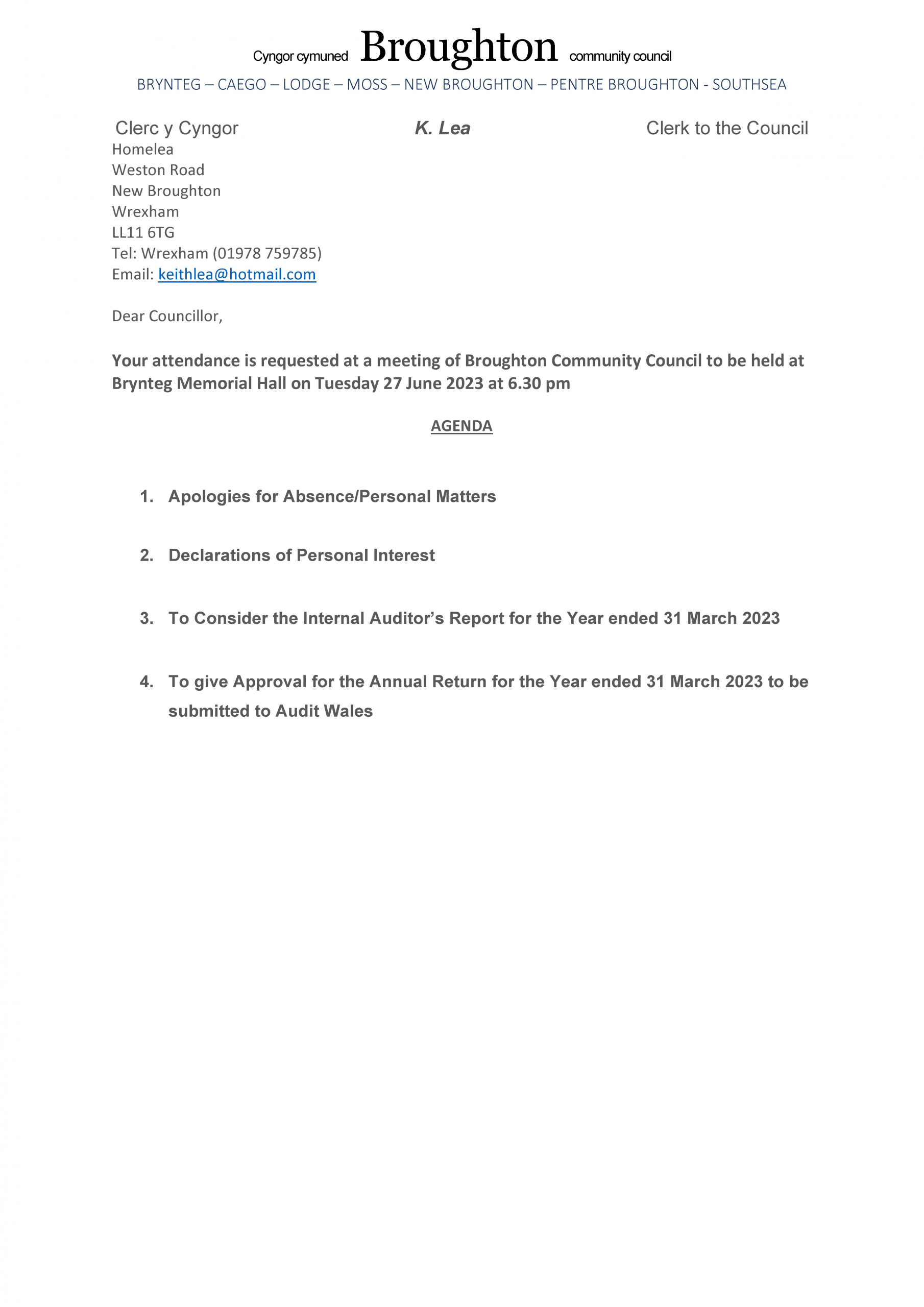 You are here: Home1 / News2 / Meetings3 / Agenda4 / Agenda – Meeting to be held on Tuesday, 27th June 2023 at 6:30 p...